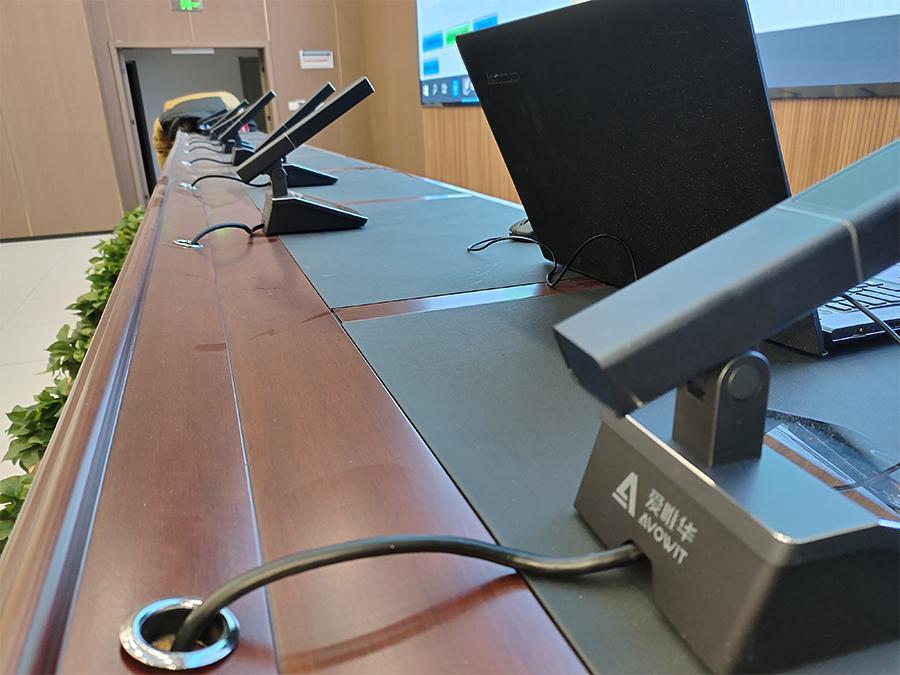 會討主機選用AMC5000 系列數(shù)字會議系統(tǒng)為核心架構(gòu)搭配雙振膜發(fā)言單元,支持同時支持多人同時發(fā)言切換,具備加密傳輸功能,并且支持“環(huán)形手拉手”連接,可連接備份主機,讓系統(tǒng)連接更方便,更可靠,也可防止信息泄露,滿足大型會議、多部門研討等場景的互動需求,操作流程簡潔,契合政務(wù)機構(gòu)高效辦公場景。